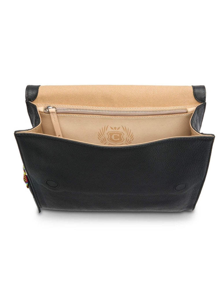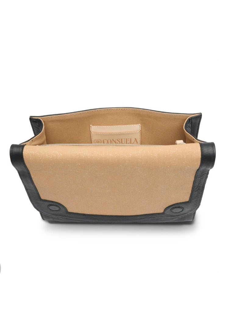 - Adjustable woven crossbody strap