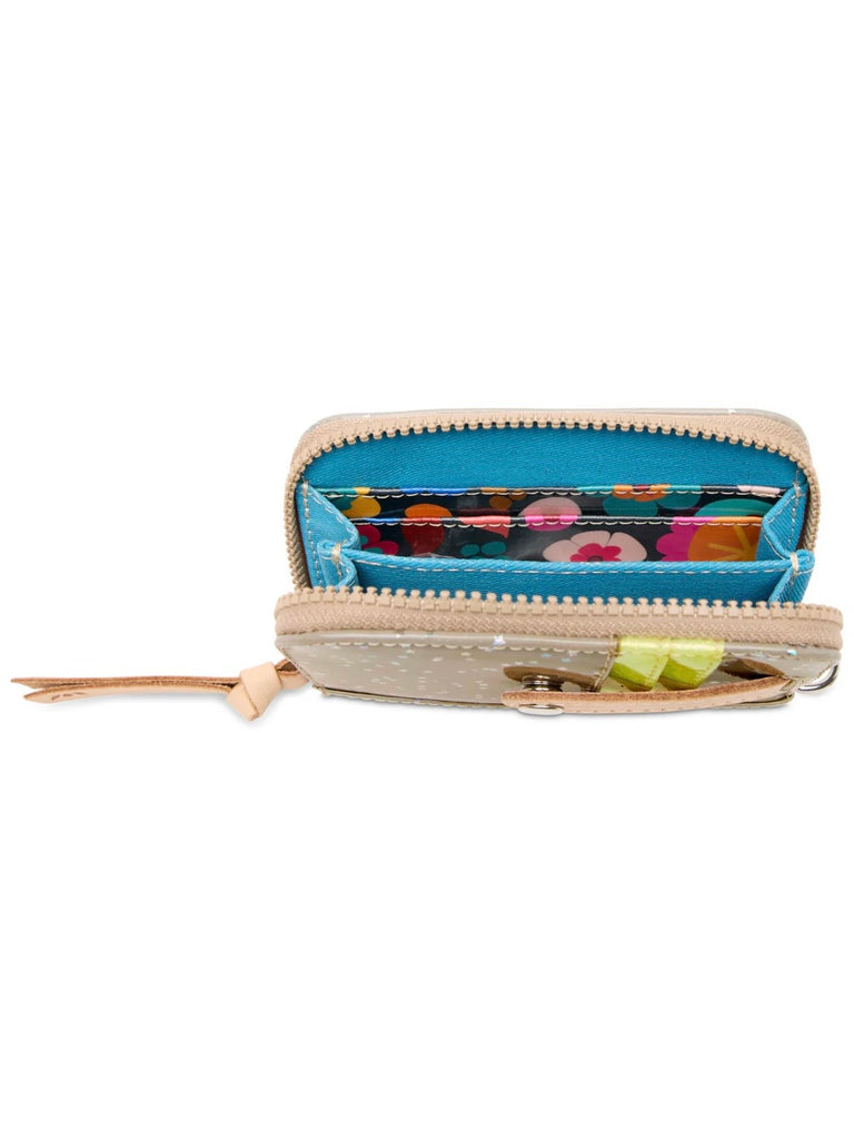 Say hello to our Zippy wallet. This small, but mighty companion has both interior and exterior card slots with a zip closure. Use the D-ring to securely attach Zippy to your bag lanyard or combi wristlet.