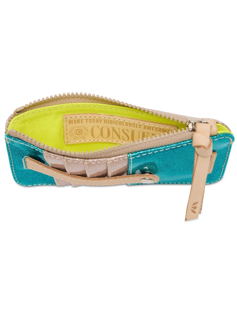 Keeping things light and easy, the card organizer is perfect for credit cards and folded bills. This colorful wallet’s snap-closure and zipper compartment provides security while you take on the day.