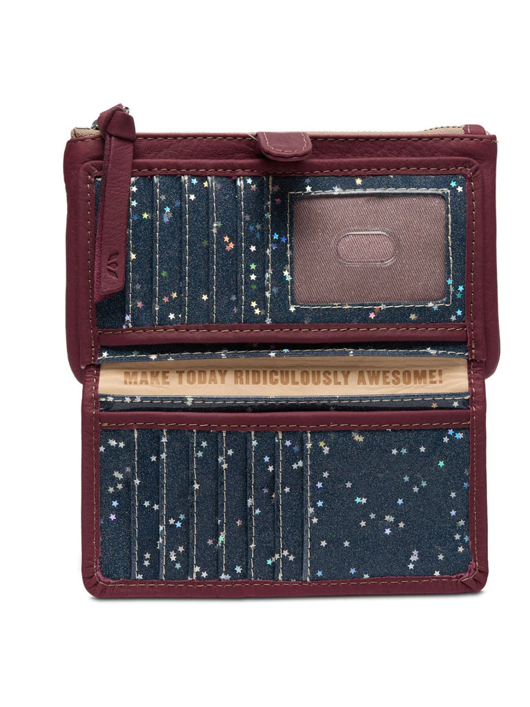 Our Slim Wallet carries cards and cash without weighing you down. Open the snap closure to reveal an ID window pocket, 12 card slots, and 4 slide pocket compartments in this versatile leather wallet.