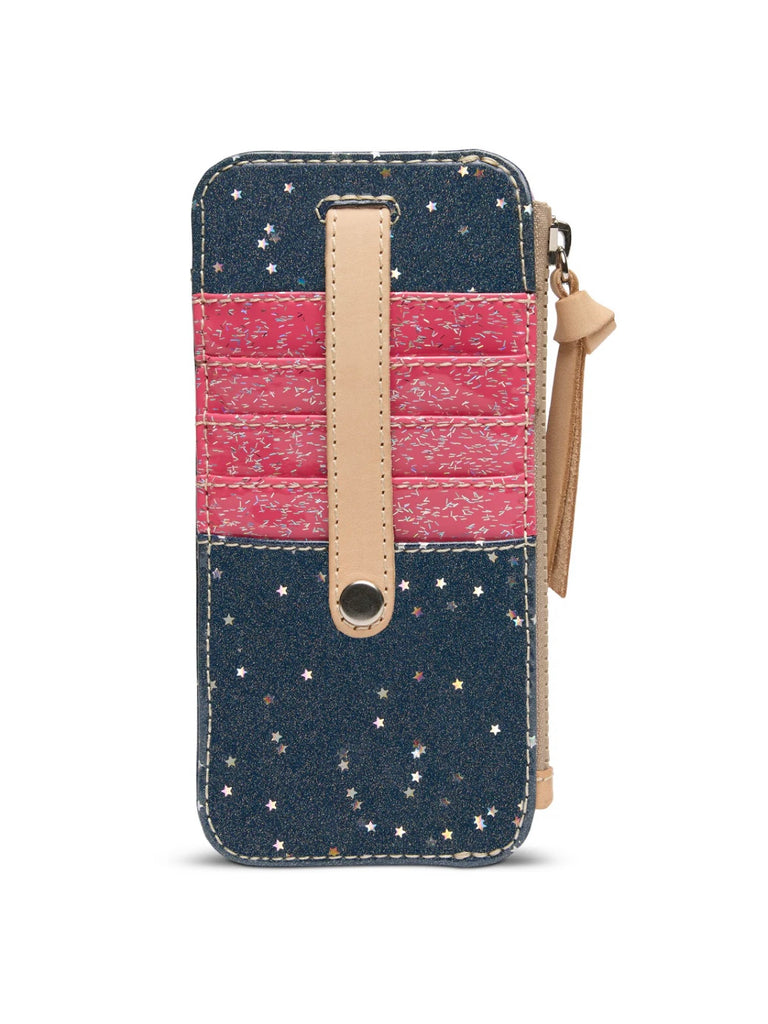 Keeping things light and easy, the card organizer is perfect for credit cards and folded bills. This colorful wallet’s snap-closure and zipper compartment provides security while you take on the day.