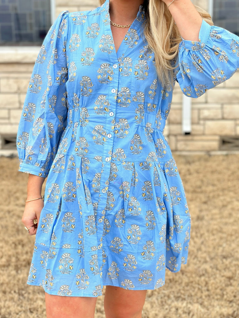 Meet the Entro Floral Mini Dress in Blue—your new partner in crime for flirtatious escapades! With its cute floral print and funky 3/4 sleeves and made of 100% cotton, keeping you cool while turning heads!