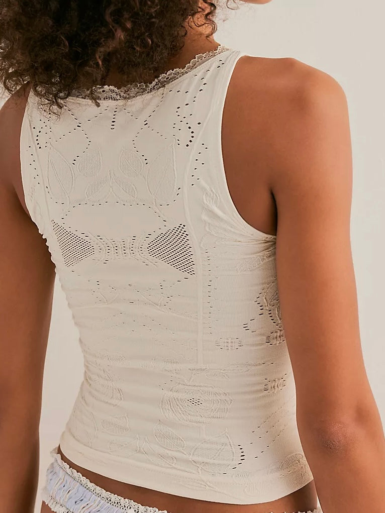 Effortlessly elevate your tanks collection with this super sleek style featured in a fitted silhouette with floral embroidery and lace trim for a forever femme finish.