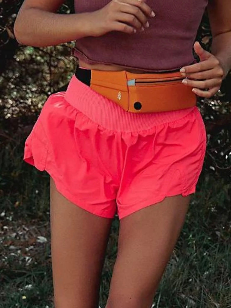 Seize the run in these so-flattering shorts, featuring a durable, water-resistant fabrication, built-in briefs and a knit high-rise waistband.