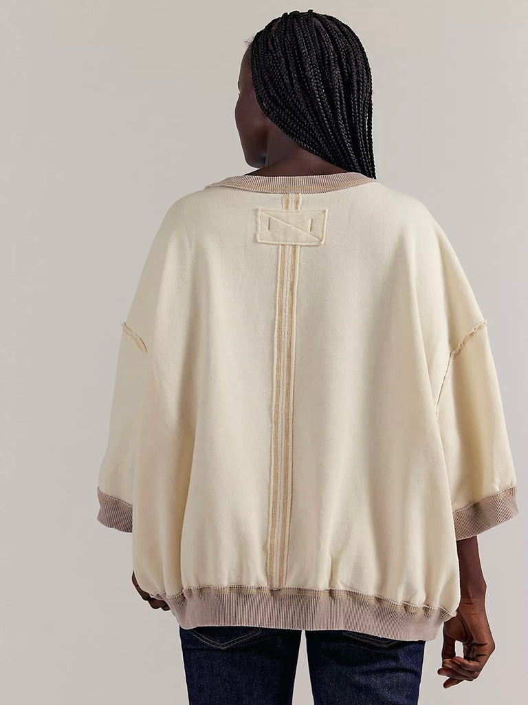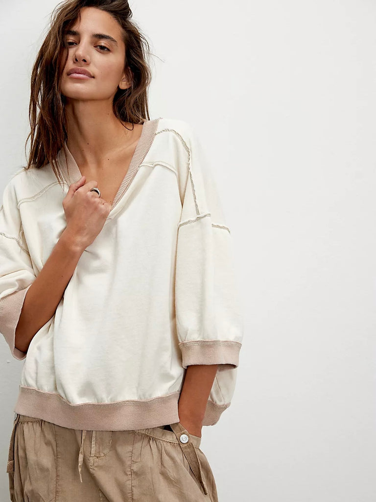Laidback to the max, this effortless pullover from We The Free is featured in a boxy, ¾ sleeve style in a washed fleece fabrication for the perfect lived-in look.