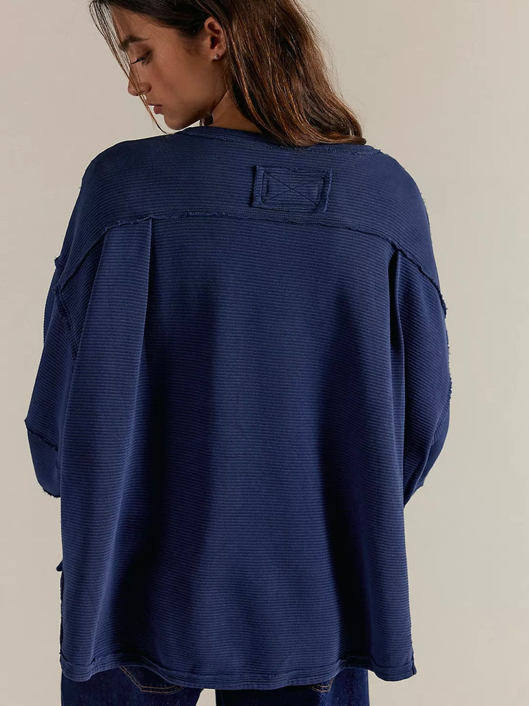 A twist on the classic tee, this long-sleeved shirt from our We The Free collection has a ribbed texture and relaxed fit, with defined seams and a scoop-neck design. Fit: Oversized and loose Features: Cozy ribbed fabric, scoop neck, drop-shoulder sleeves with cuffs, unique seam detailing with raw edging Why We ❤ It: This timeless top is perfect for layering throughout the year. We The Free Heritage offers classic, lived-in basics. We The Free is an in-house brand.