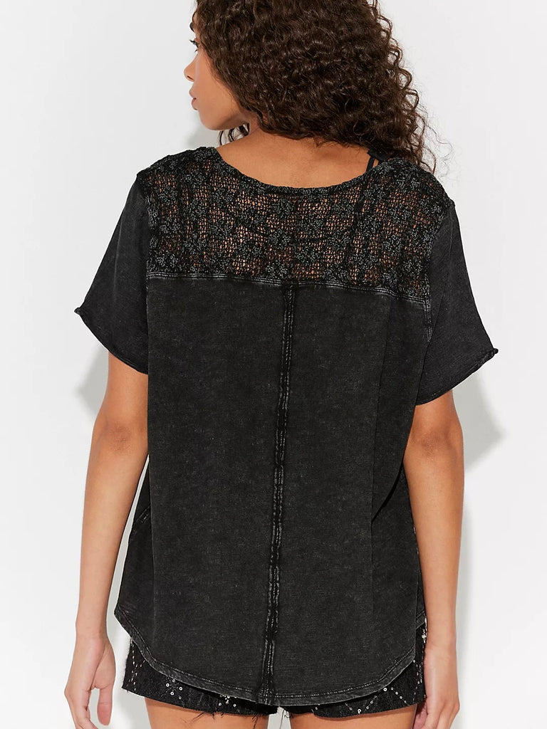 Bring back effortless style with this airy top from our We The Free collection, featuring a lightweight, heathered cotton fabrication, a relaxed henley silhouette, and lace inserts for a delicate touch.