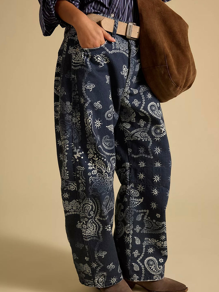 Our most-loved barrel jeans from our We The Freecollection, now featured in a playful printed fabrication.