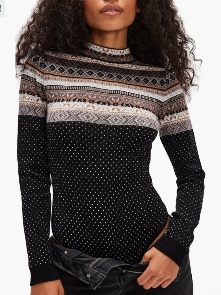Free People Winter Warmer Bodysuit - Black Ivory Combo